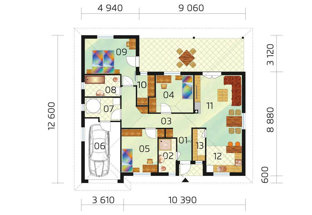 Trzypokojowy energooszczędny ceramiczny dom rodzinny o powierzchni 140 m2 oferuje 3 sypialnie, pomieszczenie gospodarcze, garderobę, pomieszczenie gospodarcze, dwie łazienki, a nawet garaż. Dzięki doskonałemu układowi masz cichą sypialnię z własną garderobą i łazienką, ale nadal z wyjściem na wspólny taras. Jeśli jesteś zainteresowany, dostosujemy projekt i dostosujemy go do twojej ziemi. Jeśli szukasz większego domu ze wszystkim, co do niego należy, ale nadal w bardzo dobrej cenie, ten prefabrykowany, ceramiczny dom jest idealnym rozwiązaniem dla Ciebie. Ponadto pomaga chronić zdrowie i przyrodę.